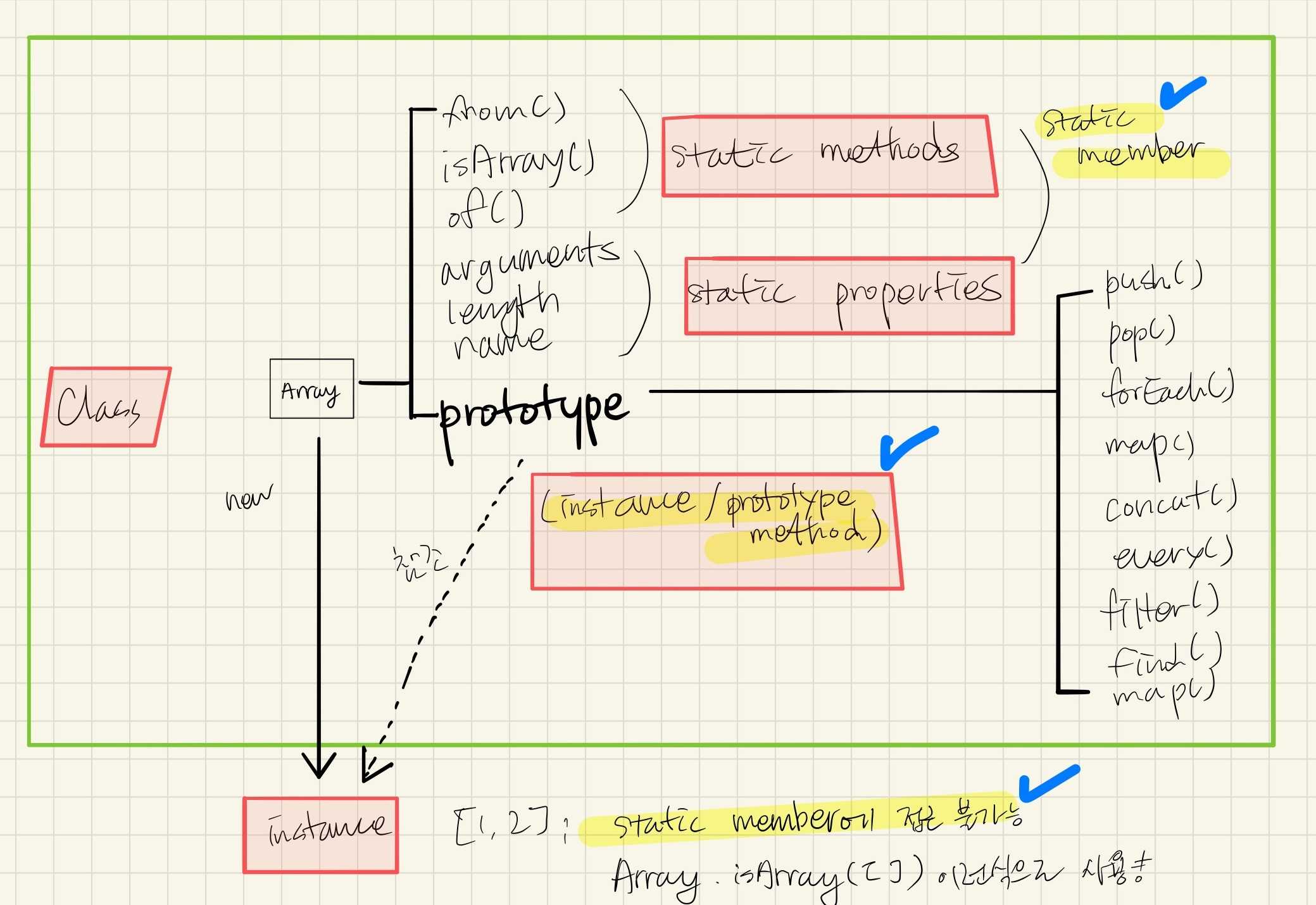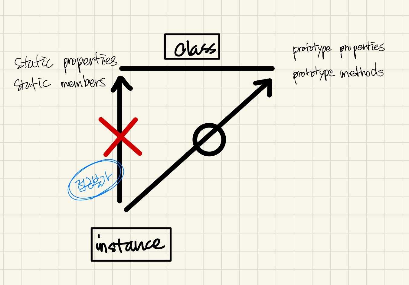 (=== static member: static method, static properties) - 인스턴스에 상속되는지(인스턴스가 참조하는지) 여부에 따라 "static member"(상속불가능)와 "instance member"(상속가능)로 나뉜다.