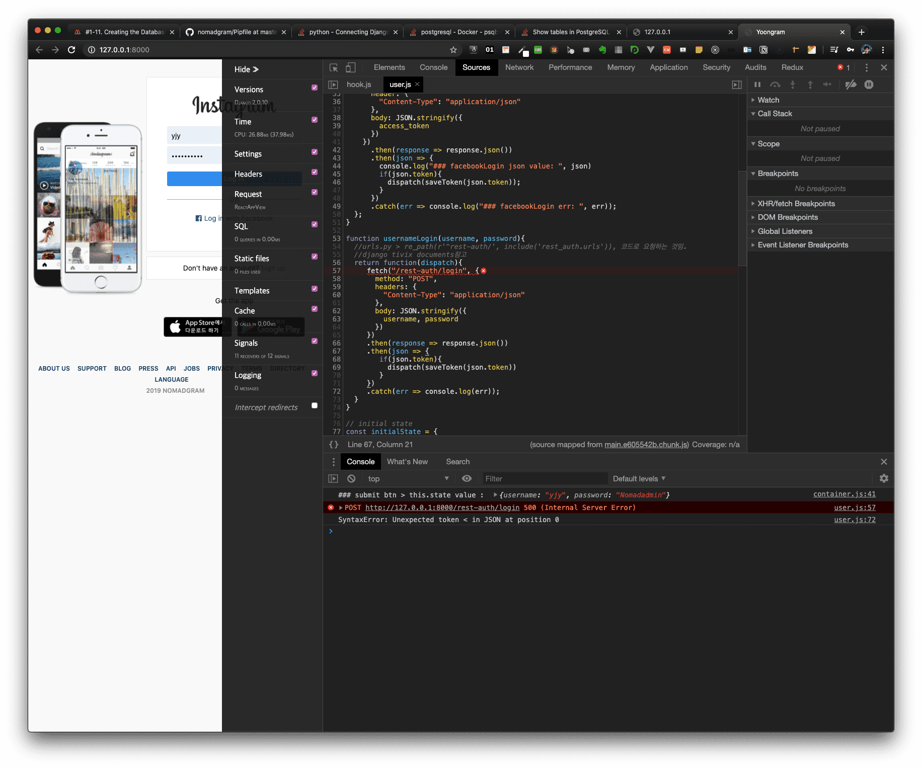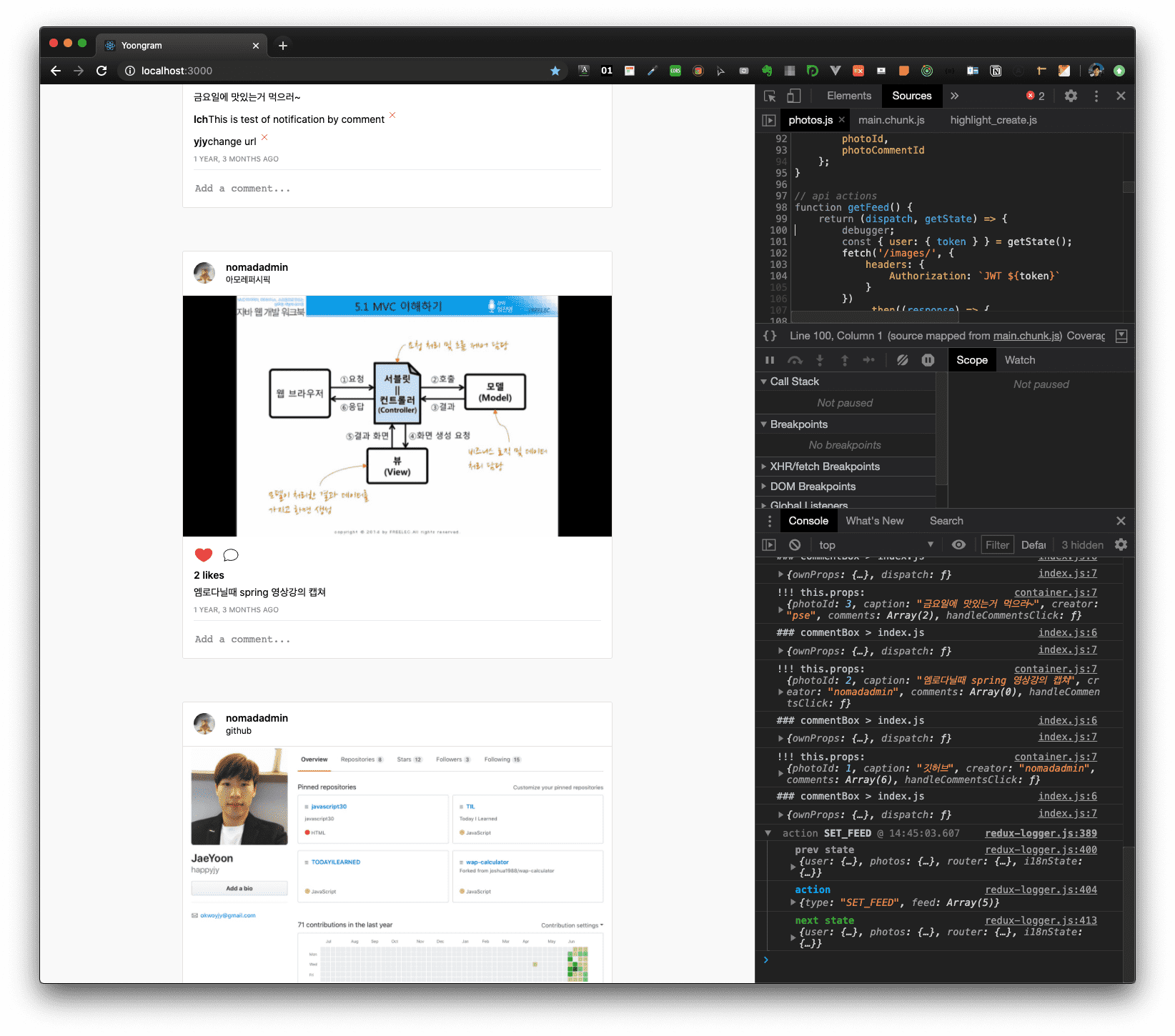 - /Users/jaeyoonyoon/development/yoongram/frontend 에서 npm start로 react 구동으로 접속해 로그인하면 완료만세