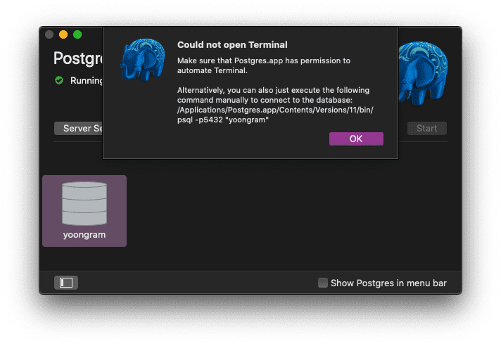 Progress yoongram 확인해보니 아래와 같은 permission 에러.