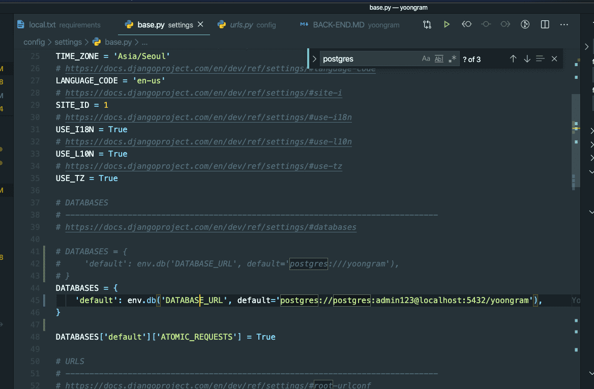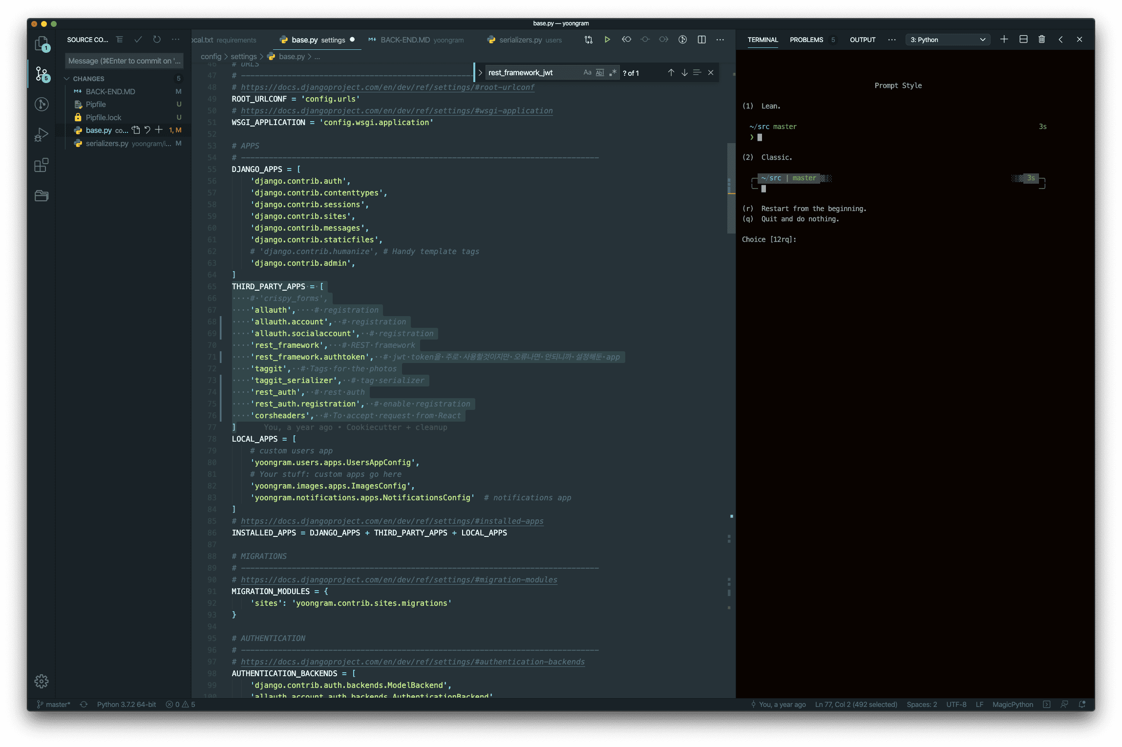 Django 가상환경에 문제가 생겨 Django프로젝트 가상환경수정, 쿠키커터 재설치, 디비 설정 재설정을 했습니다.
