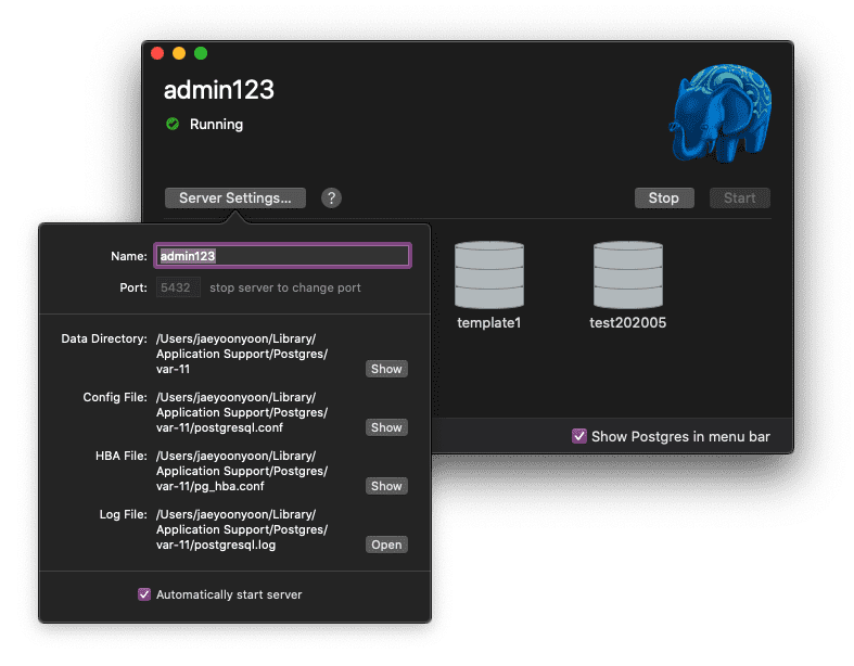 base.py 파일에 DATABASES.default 설정을 아래 post gress servet Settings와 같이 변경으로 해결